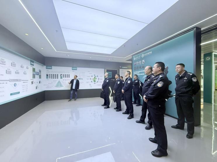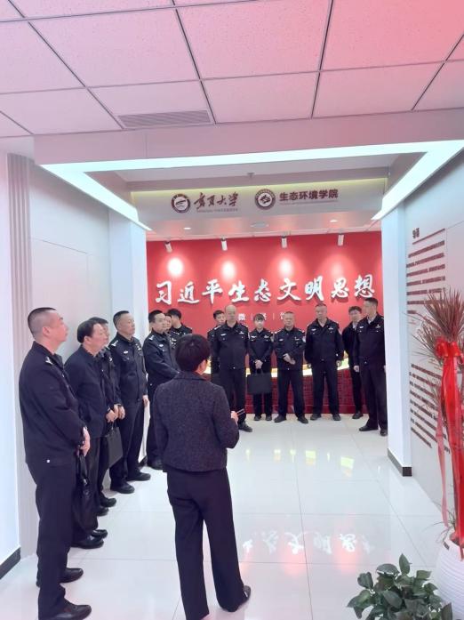 座谈结束后,环食药侦支队一行在公司师生的陪同下,先后参观了习近平生态文明思想微展馆与公司展厅,实地察看公司在践行习近平生态文明思想、人才培养体系建设、生态环境科研攻关等方面的工作成效与发展成果,对公司立足学科特色服务地方生态保护发展的举措和成效给予高度评价。