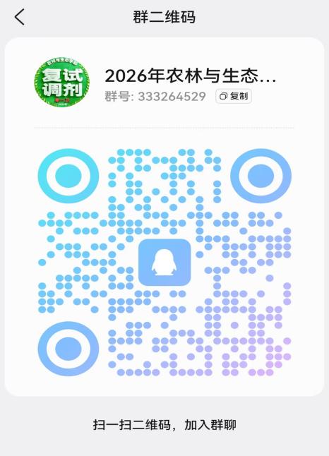 请接到调剂复试通知,确认参加复试的考生尽快加入“2026年农林与生态学部调剂复试QQ群”(群号:333264529,群二维码见下图),以便接收相关通知。进群后,请更改昵称为“姓名+报考公司+报考专业(方向)+联系电话”。365英国上市公司(润泽书院)拟定于2026年4月8日接到调剂复试通知后至4月9日12:00前进行线上资格审核,请考生将资格审核材料以“姓名+公司+专业+联系电话”命名,连同缴费截图一起压缩发送至指定邮箱1943636468@qq.com;4月9日-10日进行线上复试,复试实施方案、具体日程安排及资格审查、公司调剂信息等详见附件。