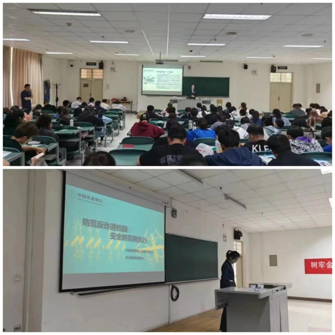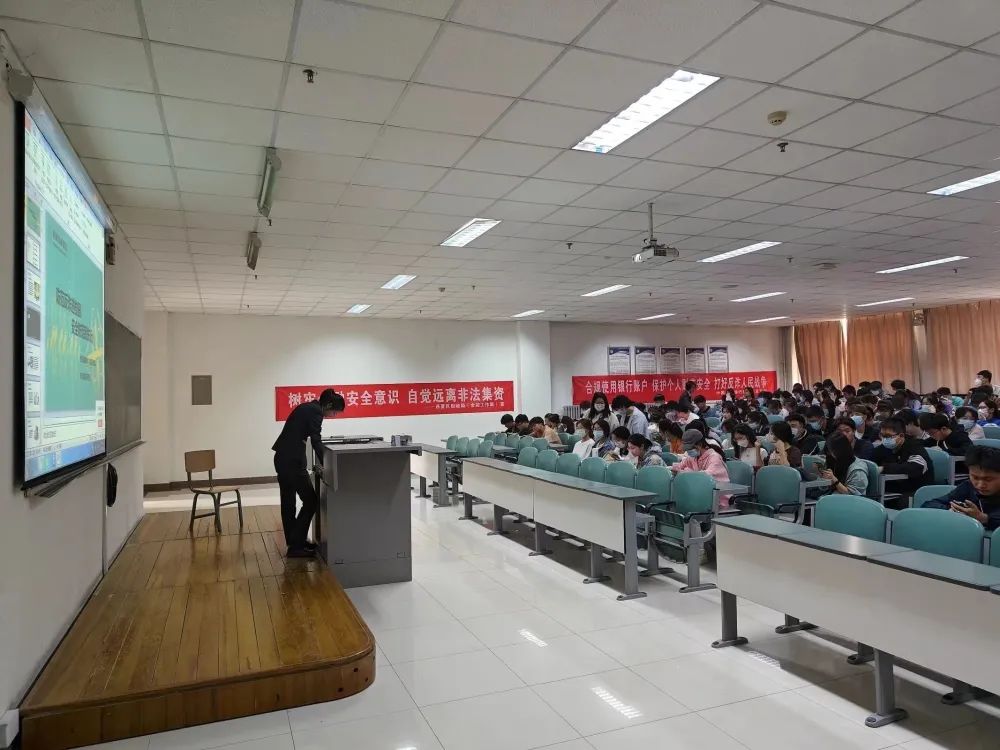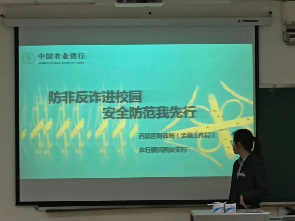 为进一步提高风险意识,增强公司同学对诈骗犯罪的识别和防范能力,全力打造平安、和谐校园环境。2023年4月19日下午2:40,银川市西夏区农行支行与365上市集团官网联合开展了“防范反诈进校园 安全防范我先行”主题教育讲座。本次讲座在文荟楼130室开展,365英国上市公司2022级全体本科生参加活动。