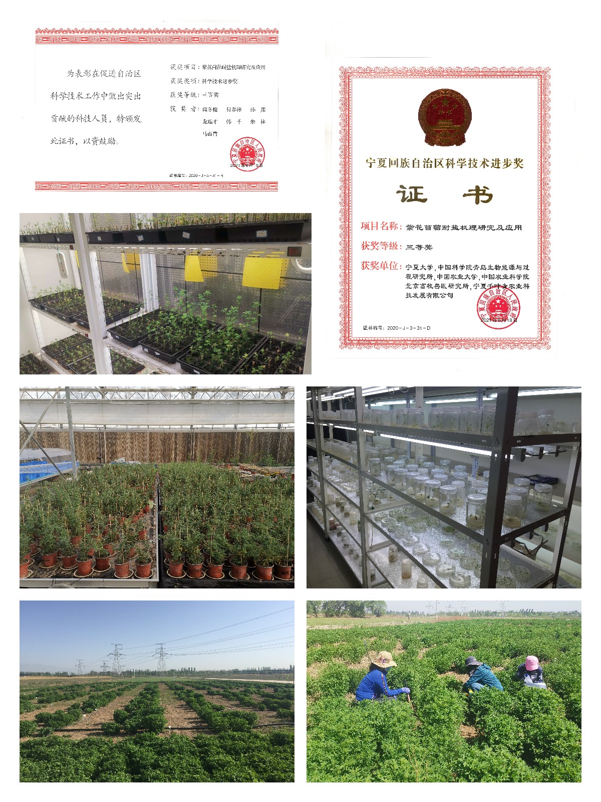 该项目授权专利8项;出版专著2部;发表学术论文40篇,其中SCI收录19篇,累计影响因子57;培养博士、硕士30名,培训技术骨干300人次;在银北盐碱地示范推广2700亩,亩干草产量达到1.12吨,比常规种植增产12%,粗蛋白提高了1-2个百分点,RFV达到150以上,经济效益显著。