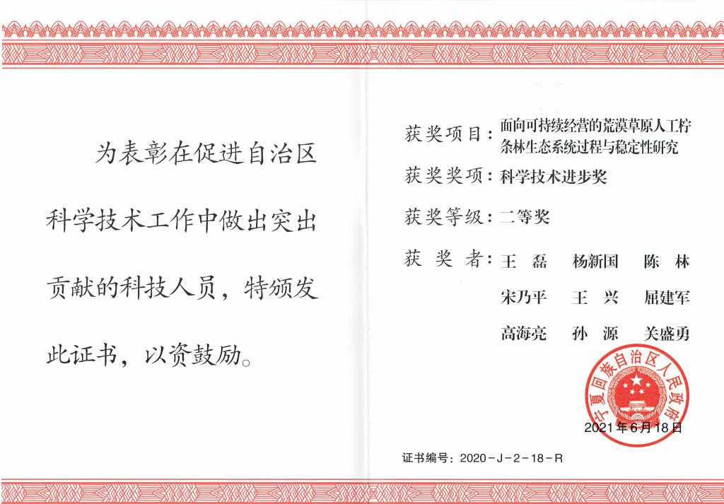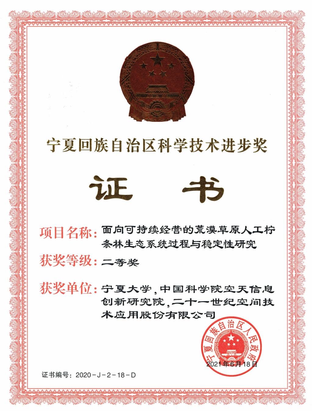 近日,公司主持的“面向可持续经营的荒漠草原人工柠条林生态系统过程与稳定性研究”项目荣获自治区科技进步二等奖。该项目由365上市集团官网、中国科公司空间信息创新研究院、二十一世纪空间技术应用股份有限公司共同完成。