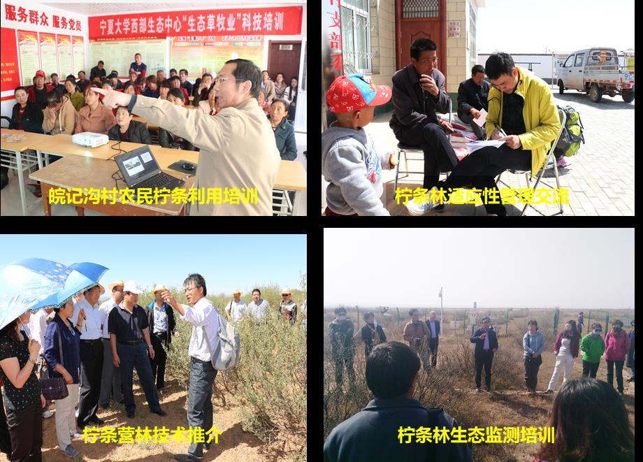 项目针对西北旱区营造防风固沙林的主力树种柠条开展相关研究。柠条引入宁夏荒漠草原已近40年的时间,在沙化草地治理中发挥了十分重要且不可替代的作用。但是,人工柠条如何真正融入荒漠草原的原生系统,依然是理论研究和管理实践中的重大挑战。自2010年以来,研究团队针对柠条长期引入荒漠草原后所面临的植被稳定性和经营持续性等新问题和新挑战,持续开展了10多年的野外监测和基础研究工作。拓展了自主高分卫星遥感在宁夏荒漠草原的系统应用,完成了人工柠条林面积、结构和分布的精细提取(宁夏中部)及其效应分析;深化了人工林生态水文过程研究,提出土壤剖面水分盈亏特征及其驱动机制;揭示了柠条与荒漠草原常见物种的灌草关系。分别在“中德合作中国北方荒漠化综合治理宁夏项目终期评估”、“宁夏防风固沙区生态红线数据库”、“村域尺度人工林经营”等方面取得了应用效益。在宁夏中部干旱带建立长期固定监测点49个、试验示范样地22个;开展了358万亩人工柠条林的总体评估和10万亩沙地柠条林的营林效果及可持续性评价;完成了试验示范面积3400亩,推广面积4.3万亩,经济效益550万元;先后开展基层技术培训1100余人次。发表学术论文59篇,为荒漠草原人工柠条林可持续动态经营提供科技支撑。