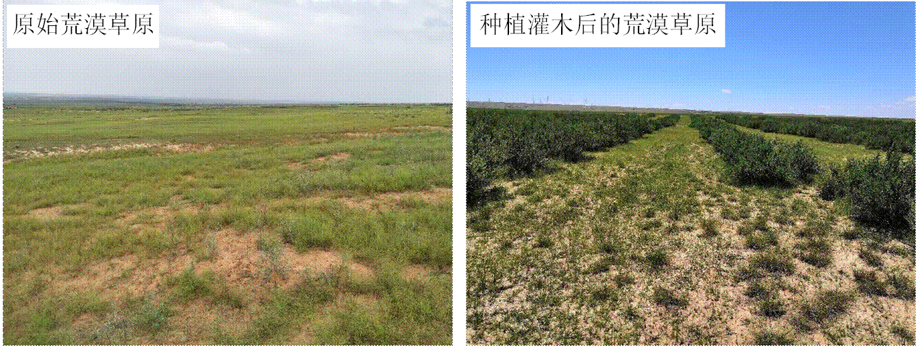 图1 荒漠草原人工灌丛入侵前后景观对比 |
