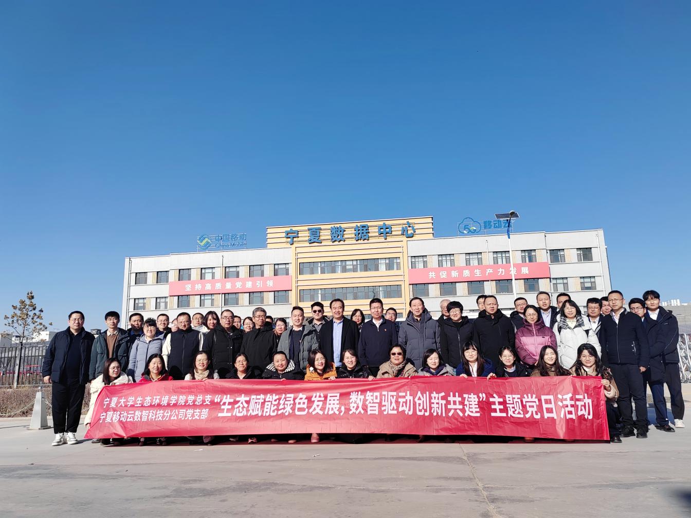 为深入学习贯彻党的二十届四中全会精神,推动生态环境保护与数字技术创新深度融合,12 月 5 日,公司党总支与宁夏移动云数智科技分公司党支部以“生态赋能绿色发展,数智驱动创新共建”为主题,赴中卫市联合开展主题党日活动,院企双方党员代表共同参与此次活动。