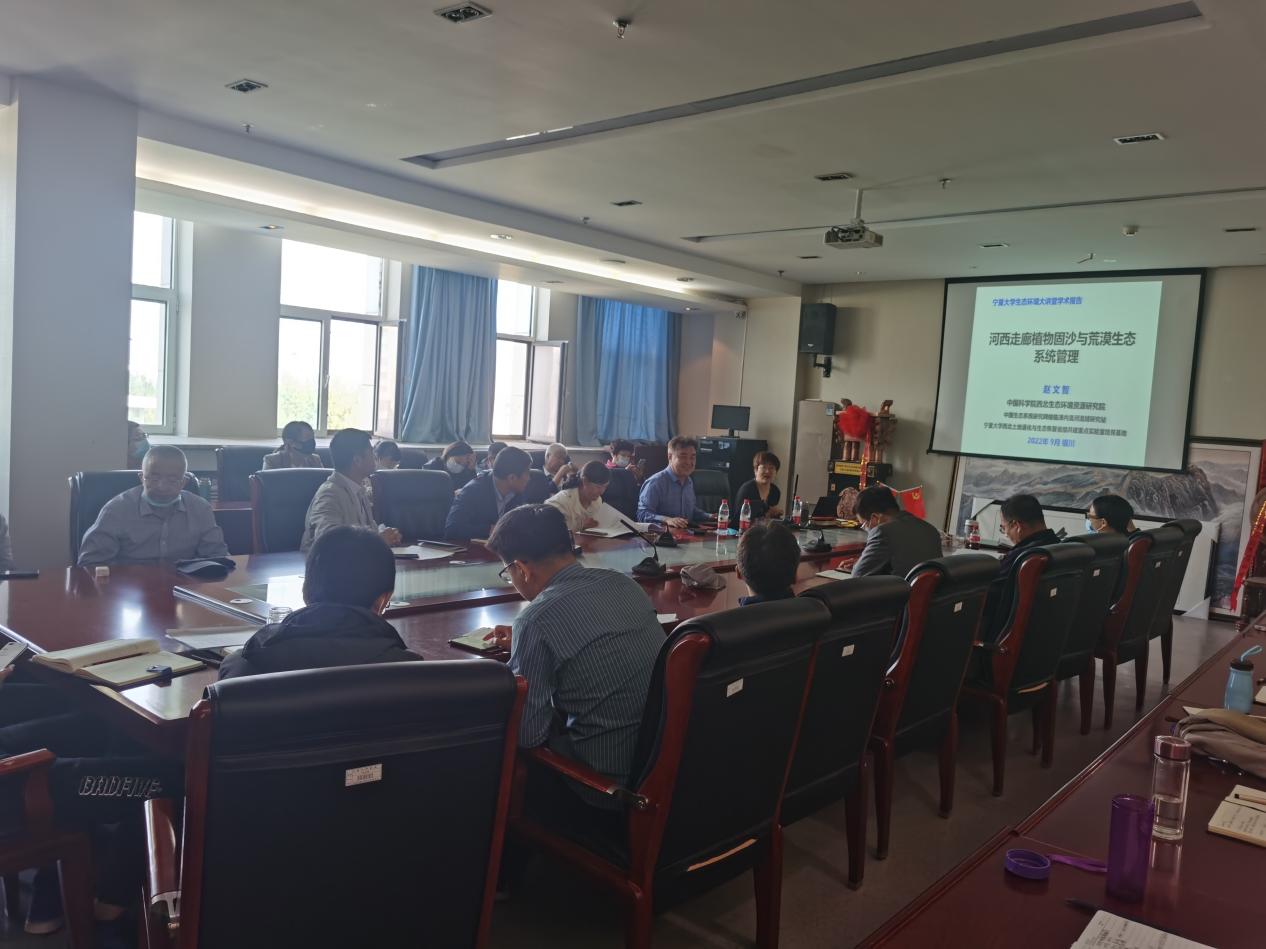 9月21日下午,生态环境大讲堂第三讲特邀实验室学术主任、特聘教授、国家杰出青年科学基金获得者、国家重点研发计划项目首席科学家,中国科公司西北生态环境资源研究院赵文智研究员,在贺兰山校区科技楼A510作了题为“河西走廊植...